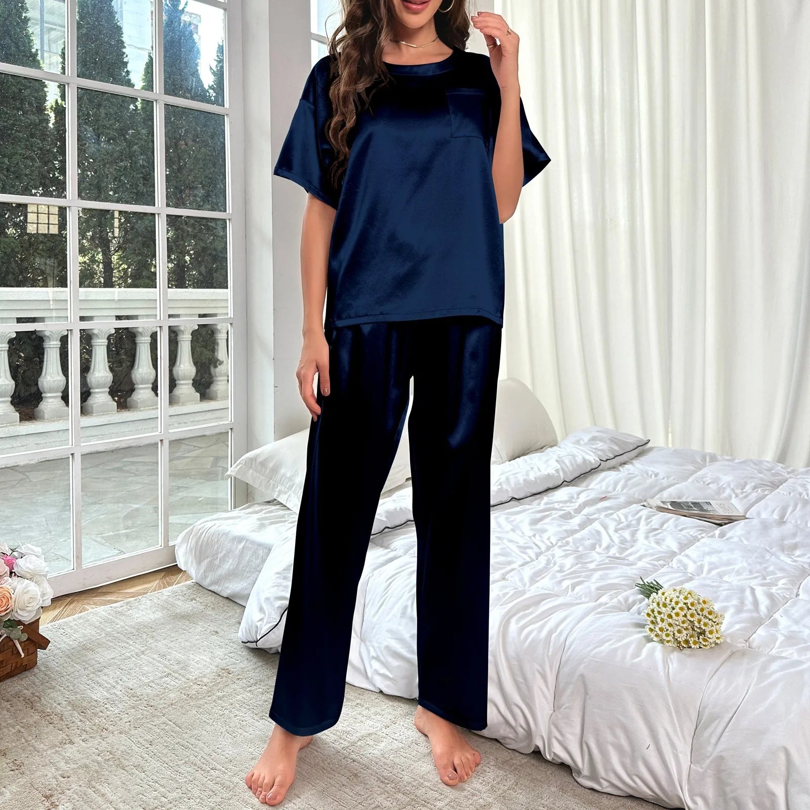 Det bløde satinlook-stof føles let og glat mod huden og giver en eksklusiv glans, der løfter dit hjemme-look til et nyt niveau af raffinement.